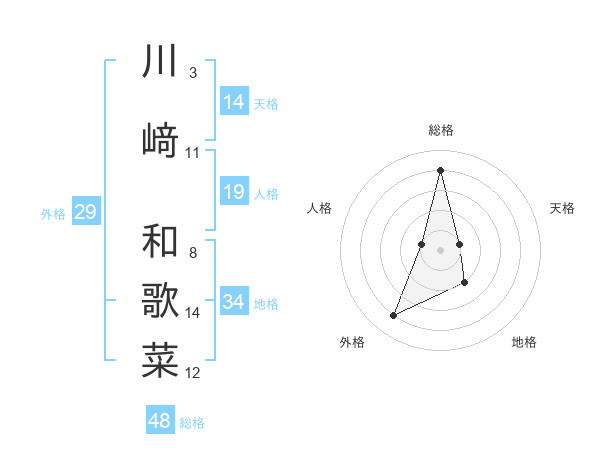 川﨑 和歌菜さんの総格は48画の4点