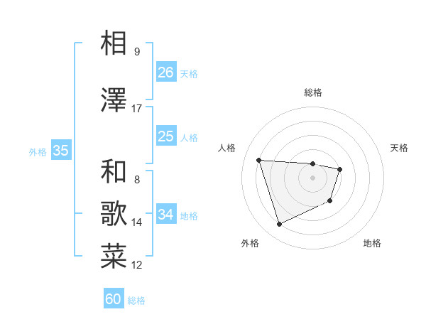 相澤 和歌菜さんを姓名の画数から五運を鑑定
