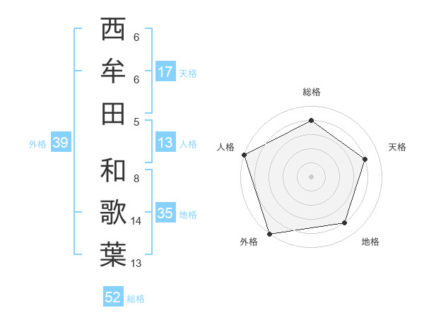 西牟田 和歌葉さんを姓名の画数から五運を鑑定