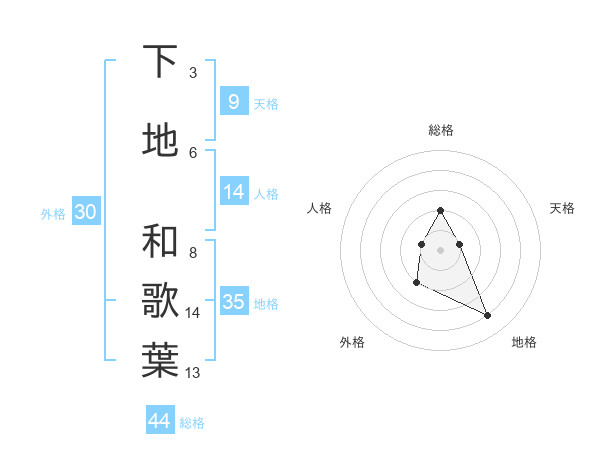 下地 和歌葉さんを姓名の画数から五運を鑑定
