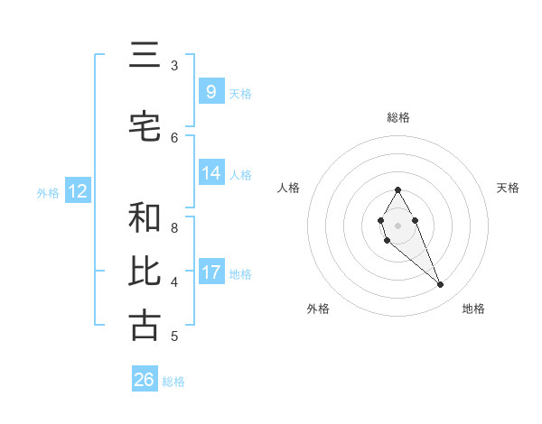 三宅 和比古さんの総格は26画の2点!