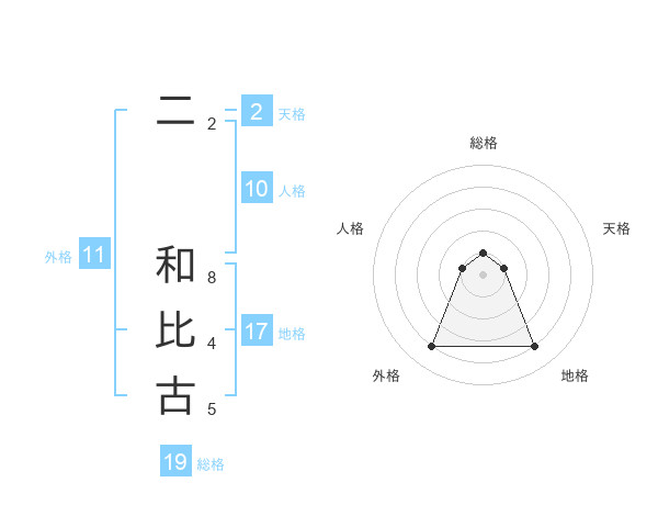 二 和比古さんの地格は17画の4点!