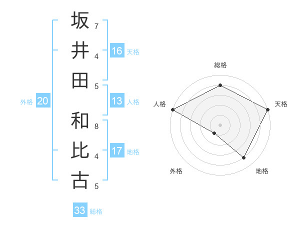 坂井田 和比古さんを姓名の画数から五運を鑑定