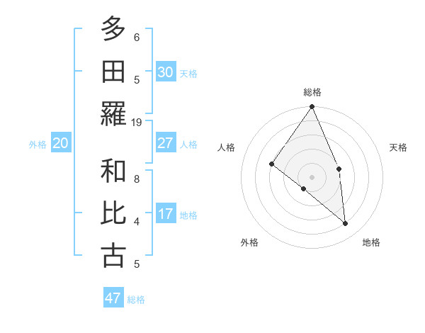 多田羅 和比古さんを姓名の画数から五運を鑑定