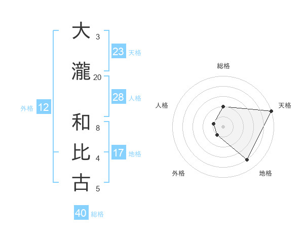 大瀧 和比古さんを姓名の画数から五運を鑑定
