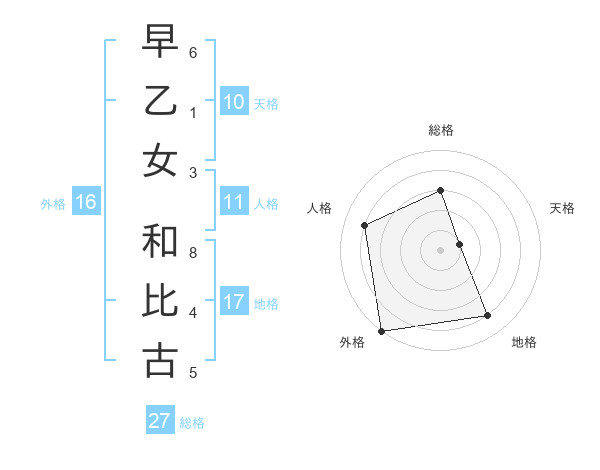 早乙女 和比古さんを姓名の画数から五運を鑑定