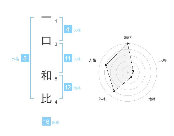 一口 和比さんの総格は16画の5点!