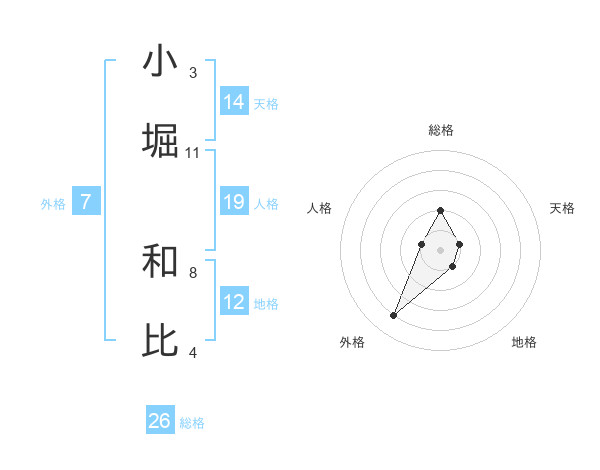 小堀 和比さんの天格は14画の1点!
