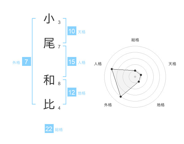 小尾 和比さんの総格は22画の1点!