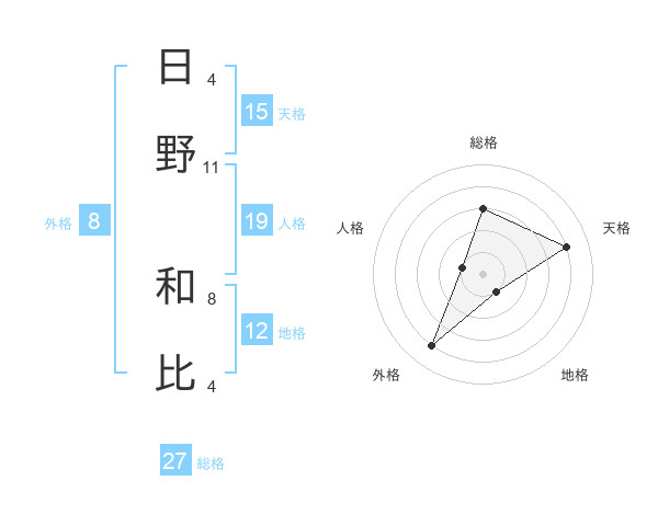 日野 和比さんの天格は15画の4点!