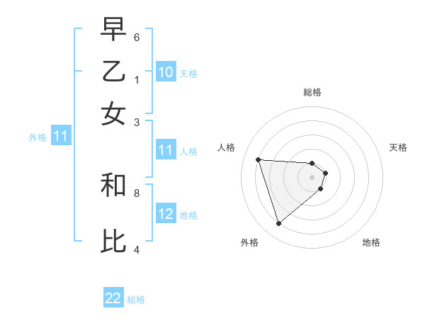 早乙女 和比さんの外格は11画の4点!
