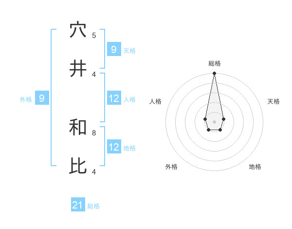 穴井 和比さんの総格は21画の5点!