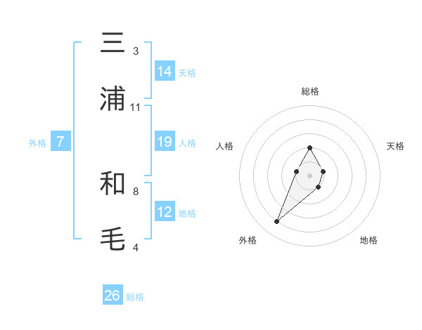三浦 和毛さんを姓名の画数から五運を鑑定