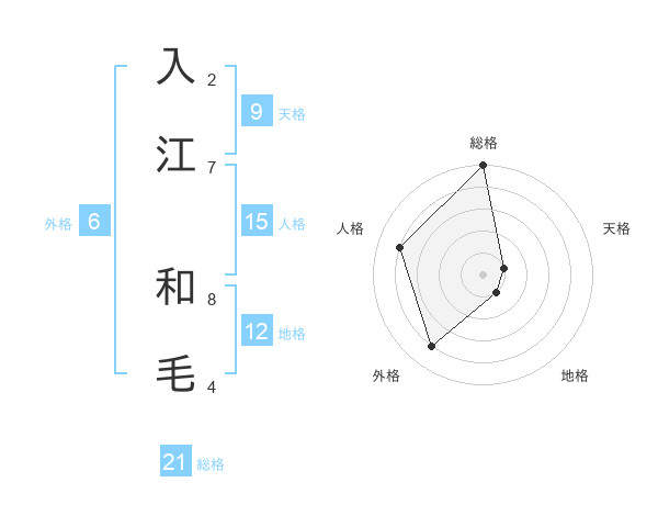 入江 和毛さんの総格は21画の5点!