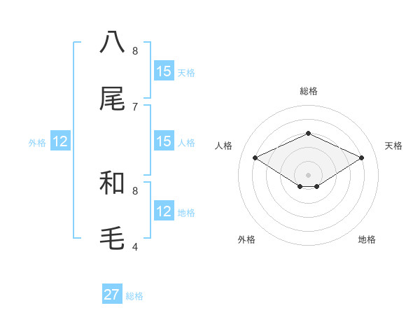 八尾 和毛さんを姓名の画数から五運を鑑定