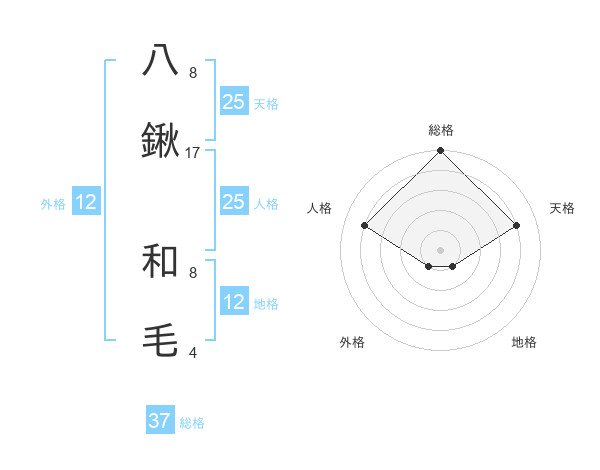 八鍬 和毛さんを姓名の画数から五運を鑑定