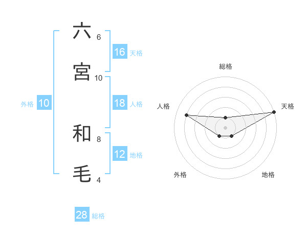 六宮 和毛さんの天格は16画の5点!