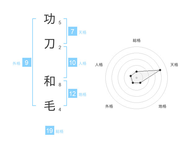 功刀 和毛さんの総格は19画の1点!