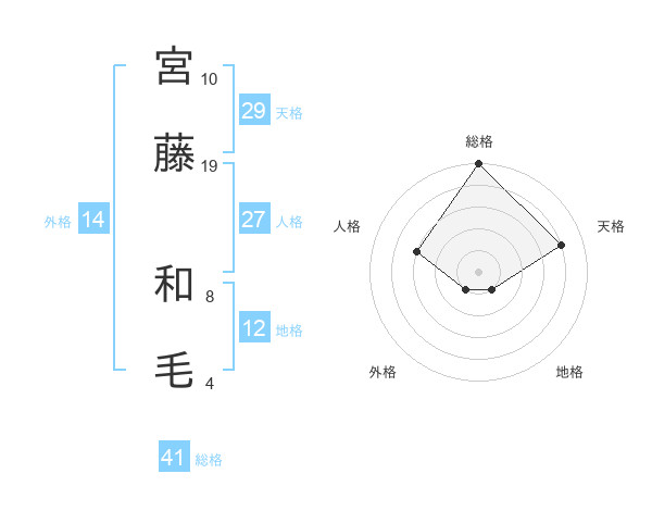 宮藤 和毛さんの天格は29画の4点!