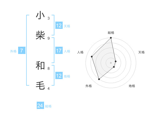 小柴 和毛さんの天格は12画の1点!