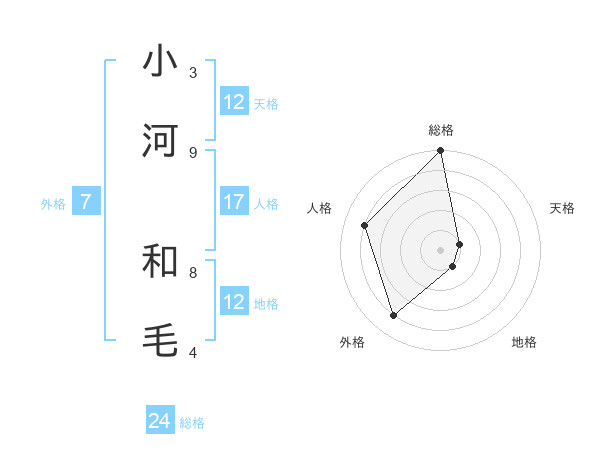 小河 和毛さんの総格は24画の5点!