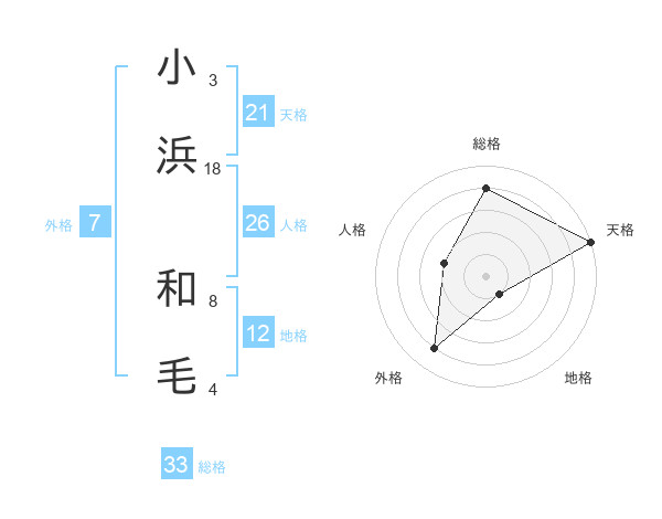 小浜 和毛さんの総格は33画の4点!