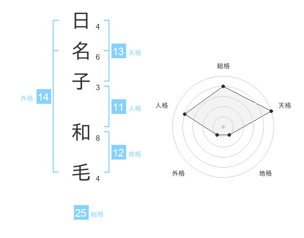 日名子 和毛さんを姓名の画数から五運を鑑定