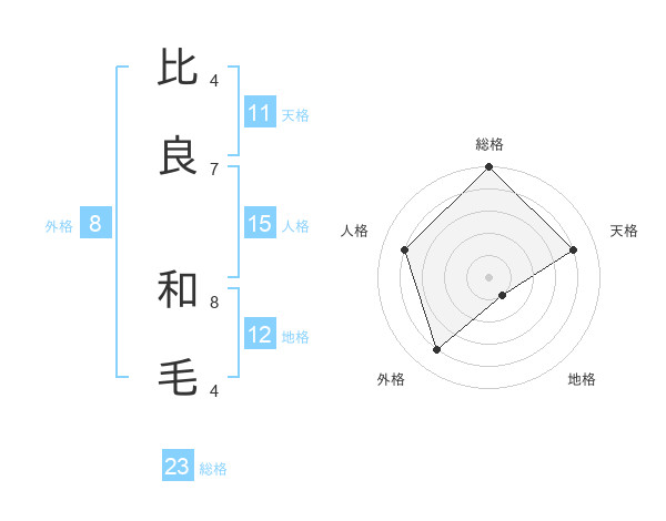 比良 和毛さんの総格は23画の5点!
