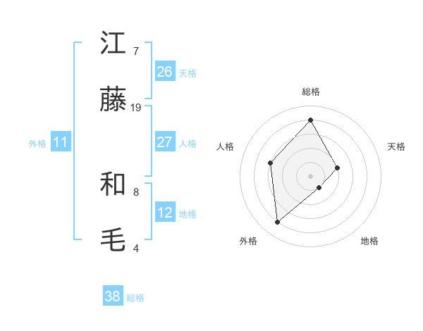 江藤 和毛さんの総格は38画の4点!