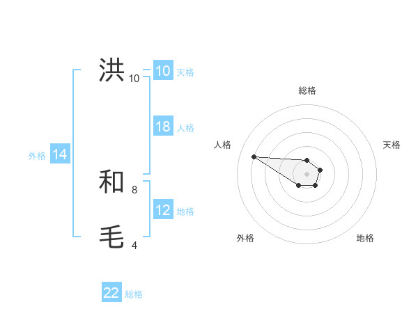 洪 和毛さんの総格は22画の1点!