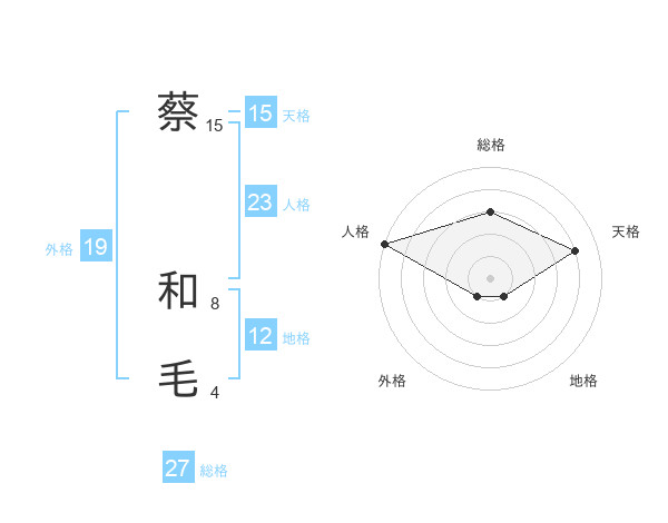 蔡 和毛さんの天格は15画の4点!