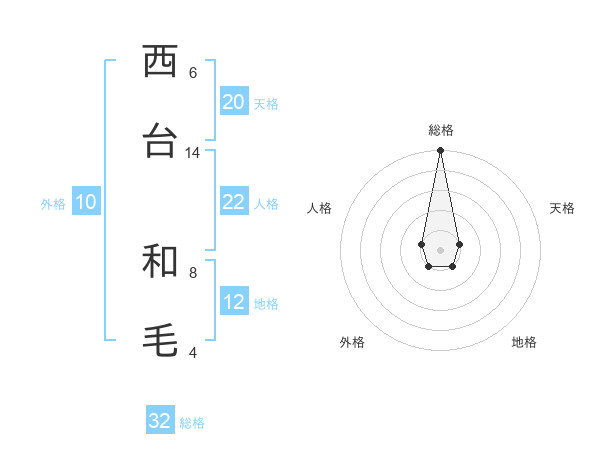 西台 和毛さんの総格は32画の5点!