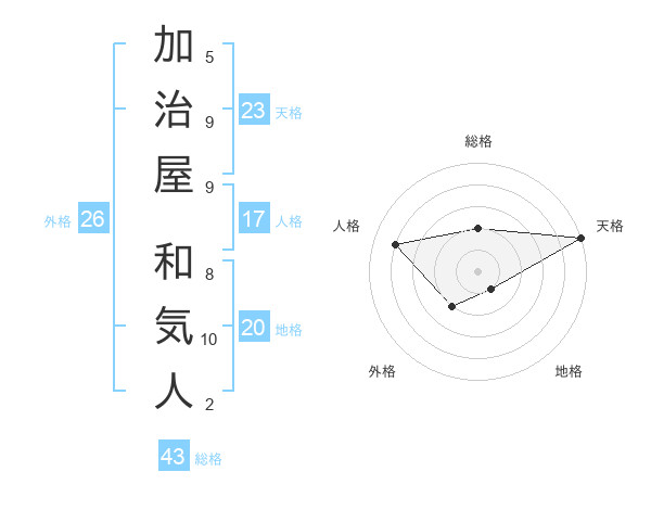 加治屋 和気人さんを姓名の画数から五運を鑑定