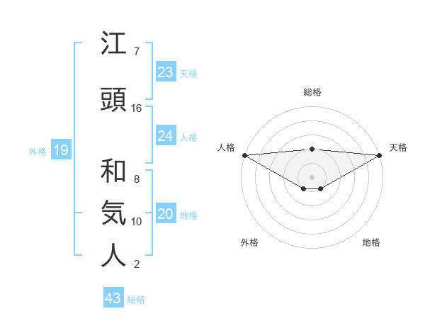 江頭 和気人さんを姓名の画数から五運を鑑定