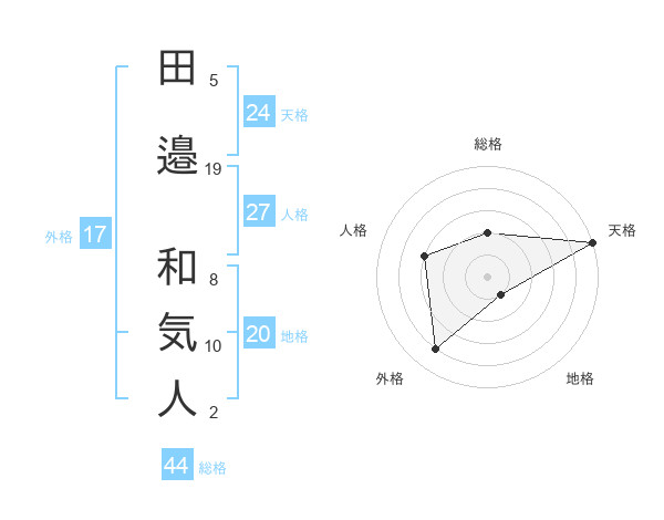 田邉 和気人さんを姓名の画数から五運を鑑定