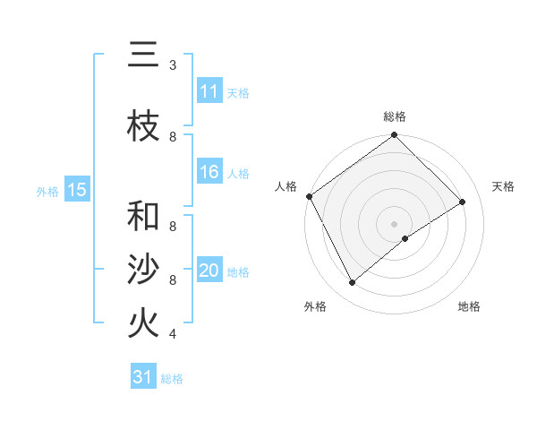 三枝 和沙火さんの総格は31画の5点!