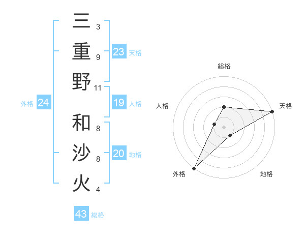 三重野 和沙火さんを姓名の画数から五運を鑑定