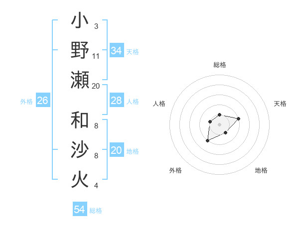 小野瀬 和沙火さんを姓名の画数から五運を鑑定