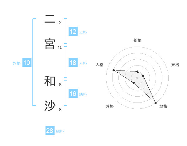 二宮 和沙さんの総格は28画の1点!