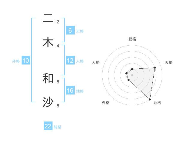 二木 和沙さんの天格は6画の4点!
