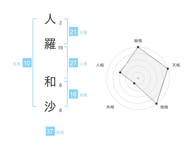 人羅 和沙さんの総格は37画の5点!