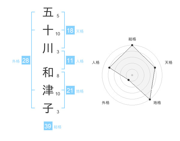 五十川 和津子さんを姓名の画数から五運を鑑定