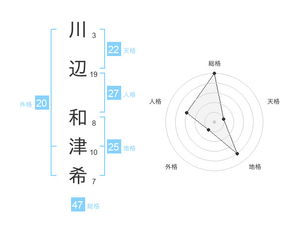 川辺 和津希さんの総格は47画の5点!
