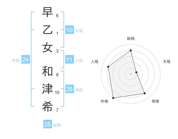 早乙女 和津希さんを姓名の画数から五運を鑑定