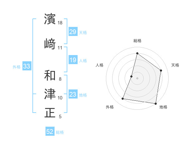 濱﨑 和津正さんの総格は52画の4点!
