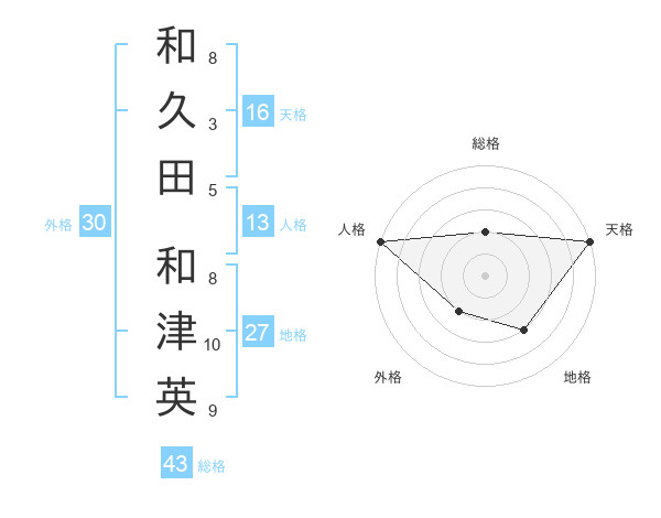 和久田 和津英さんを姓名の画数から五運を鑑定