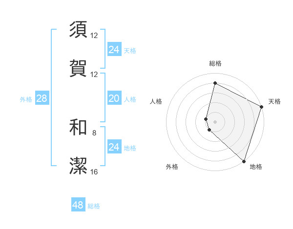 須賀 和潔さんの天格は24画の5点!