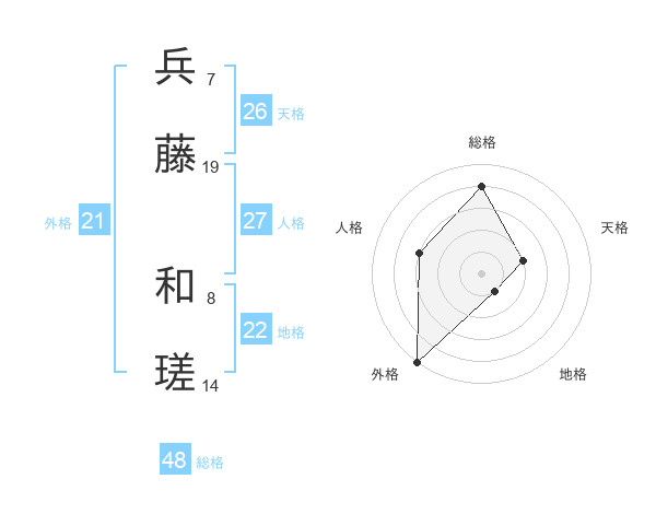 兵藤 和瑳さんを姓名の画数から五運を鑑定