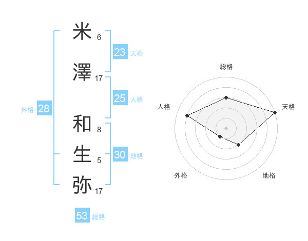 米澤 和生弥さんを姓名の画数から五運を鑑定