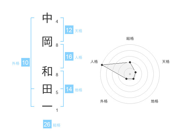 中岡 和田一さんの人格は16画の5点!